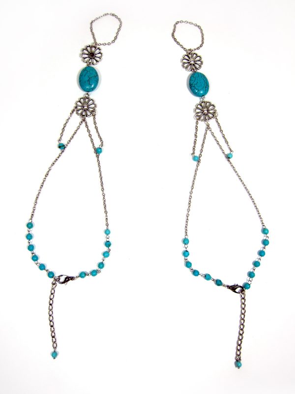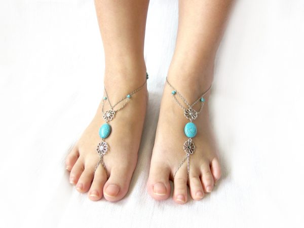 Tags: Anklet-toe-Ring, Barefoot Sandals, Foot slave with Turquoise Stone and Silver, JA1026, Silver Chain Adjustable Feet Accessories