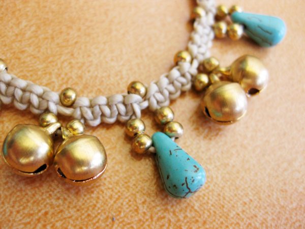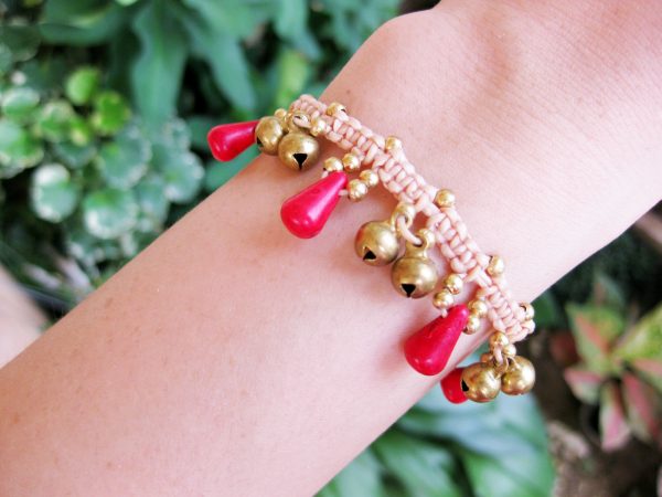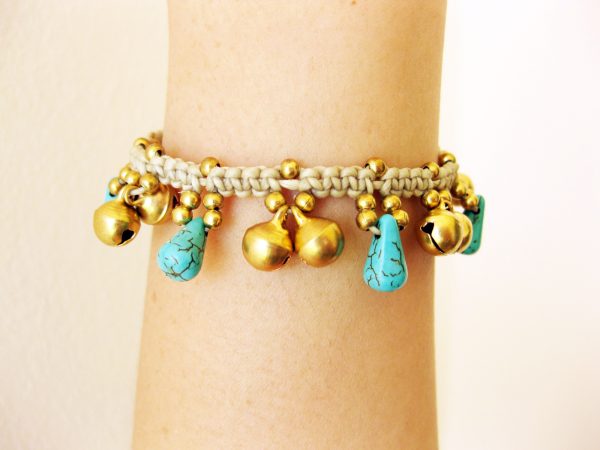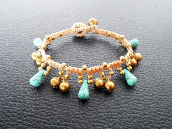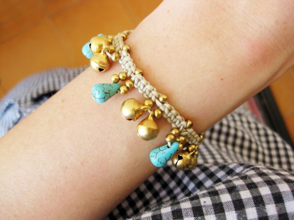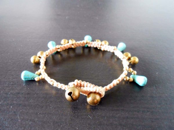 This Bracelet made with Nice Brass Bells, Bead and Stones woven together with cotton wax cord and bells for closure 2 size. Comfortable to wear. Perfect bracelet for everyday.  Perfect to wear as a casual accessory during the day or to compliment your elegant evening look!