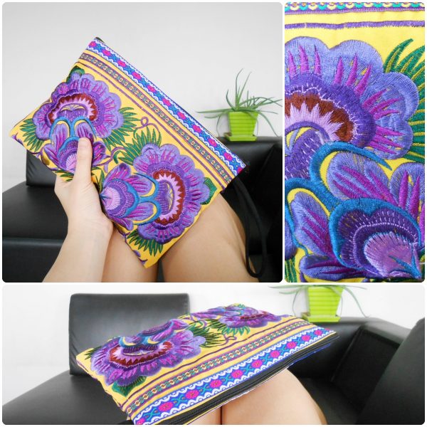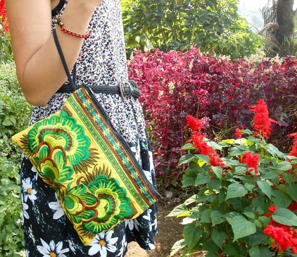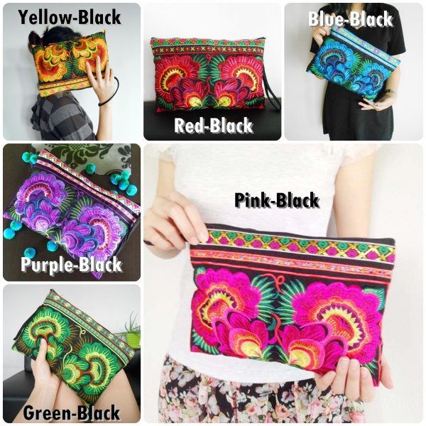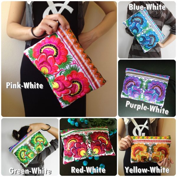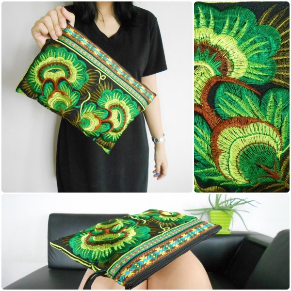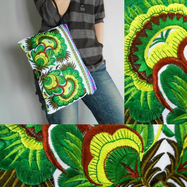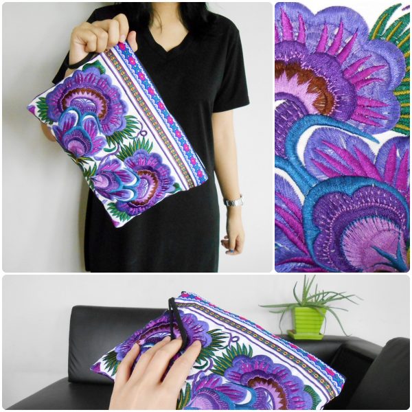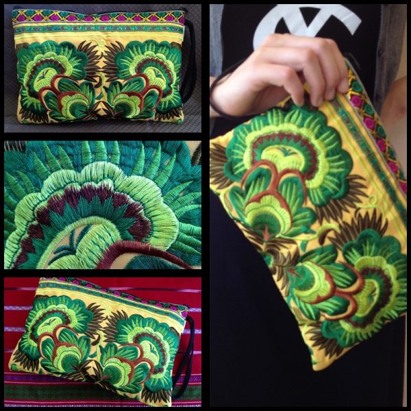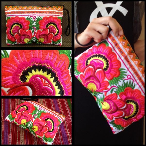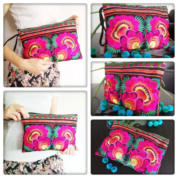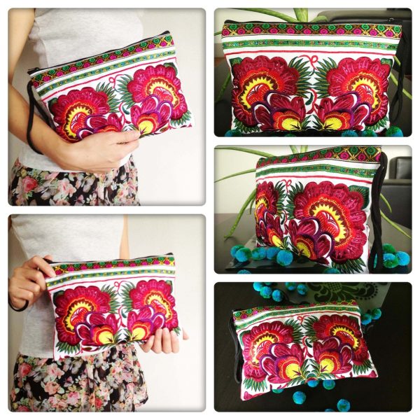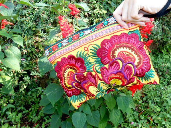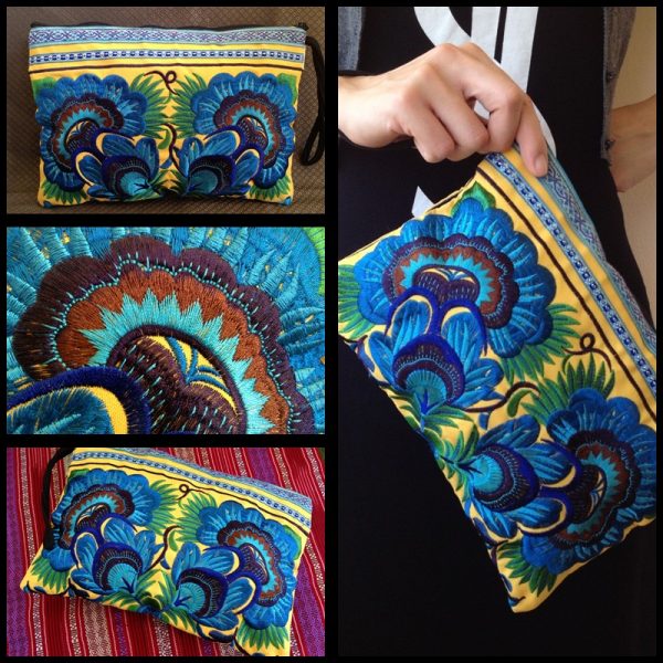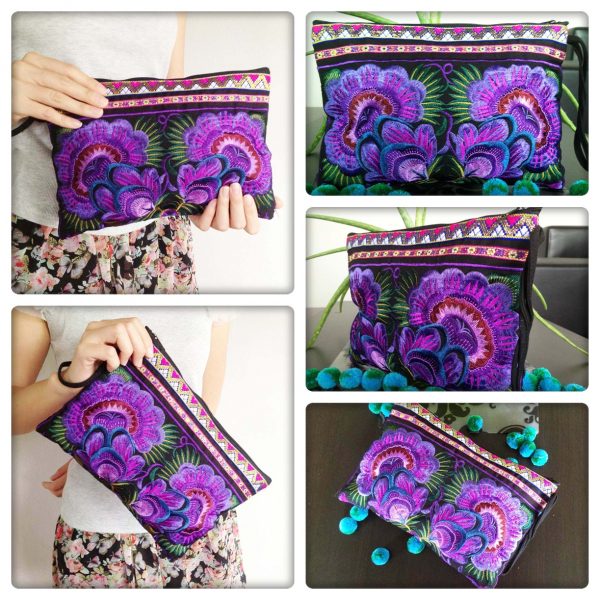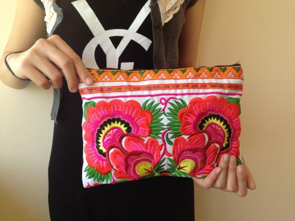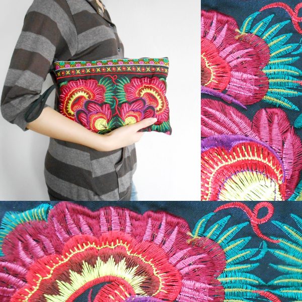 This bag is made from cotton fabric by Embroidery Chinese Hmong Hilltribe Thailand. This fabric is embroidered and the attention to detail is apparent. This versatile bag can be used for put money, coin, phone, glasses, keys or cards.