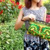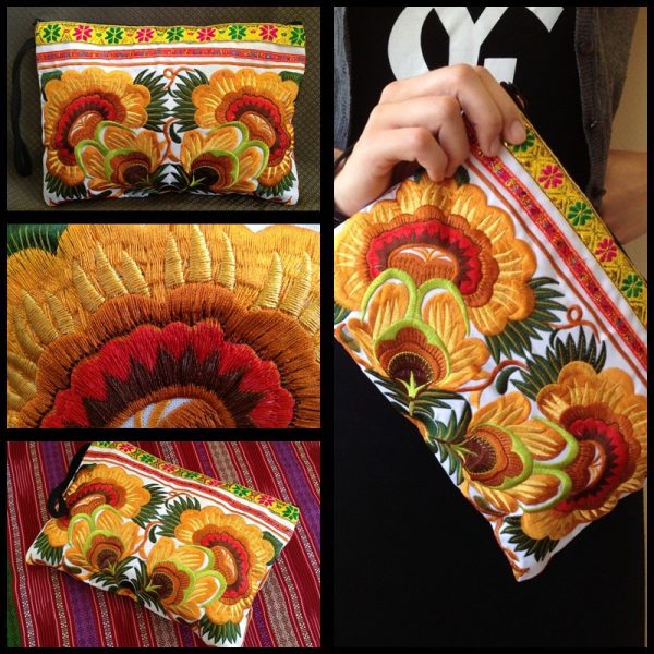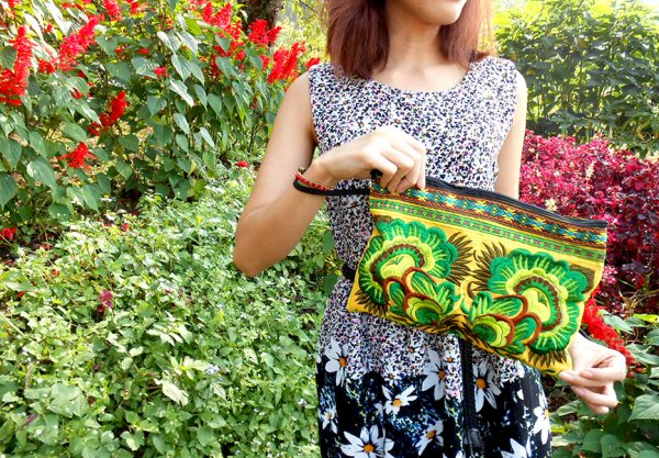 Clutch Wristlet Bag Embroidery Yellow Fabric Chinese Hmong Hilltribe Thailand (KP1053)