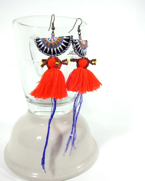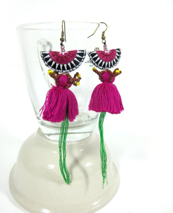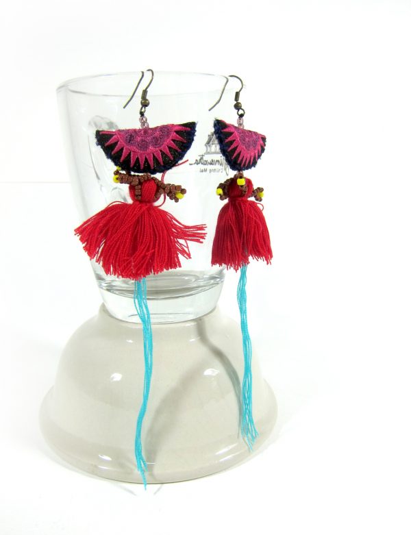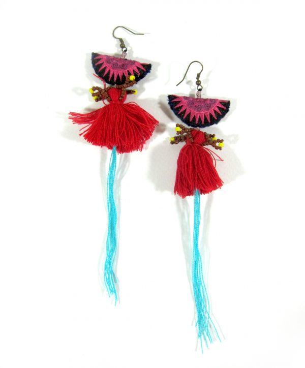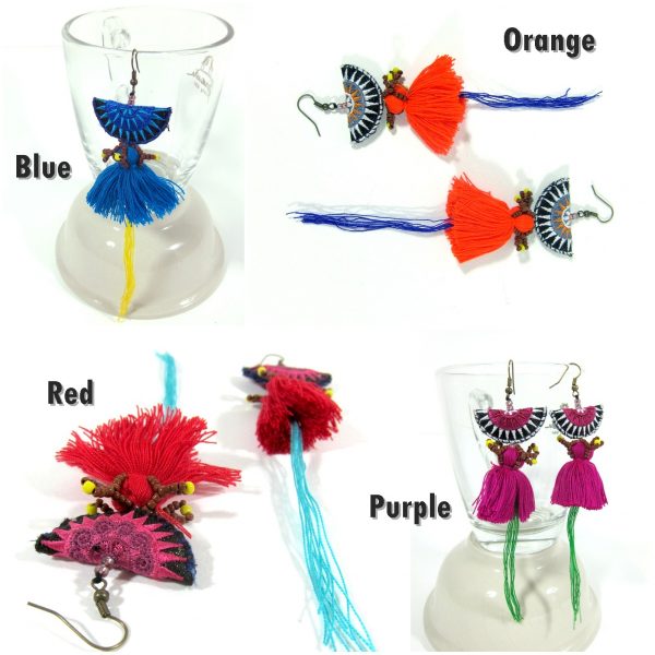 Be the first to review “Dangle Earrings Colorful Tassel with Fabric, Jewelry Semicircle Doll Hmong Hilltribe of Thailand Handmade. JE1073”