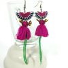 Dangle Earrings Colorful Tassel with Fabric, Jewelry Semicircle Doll Hmong Hilltribe of Thailand Handmade. JE1073