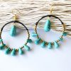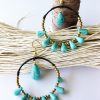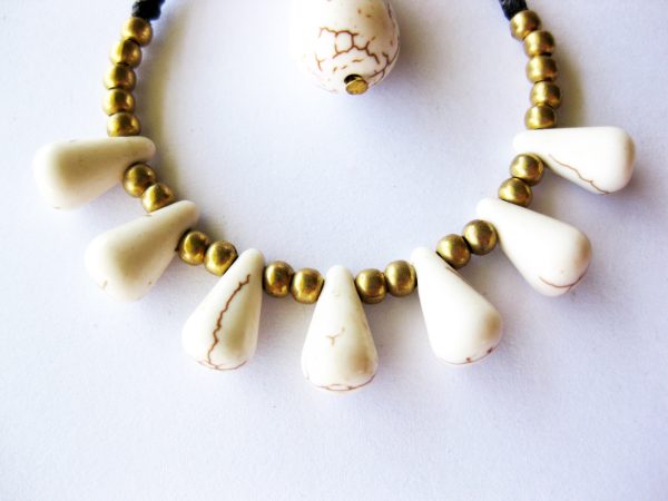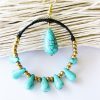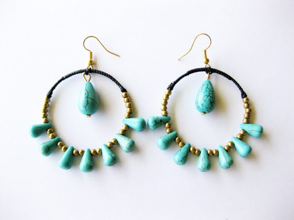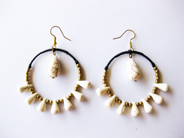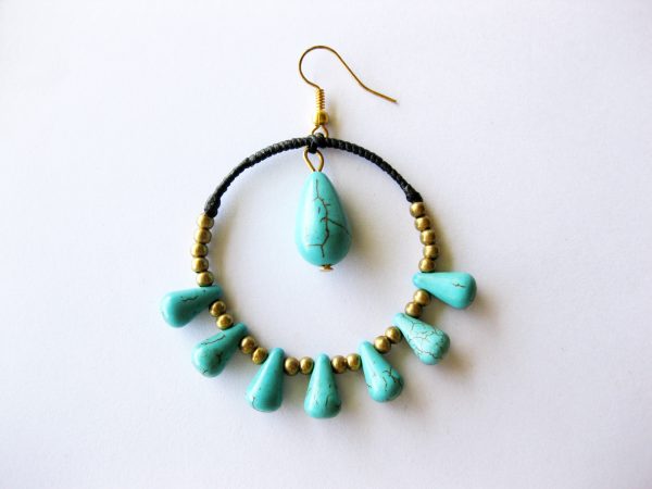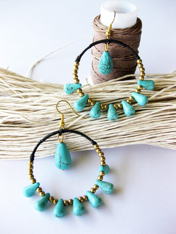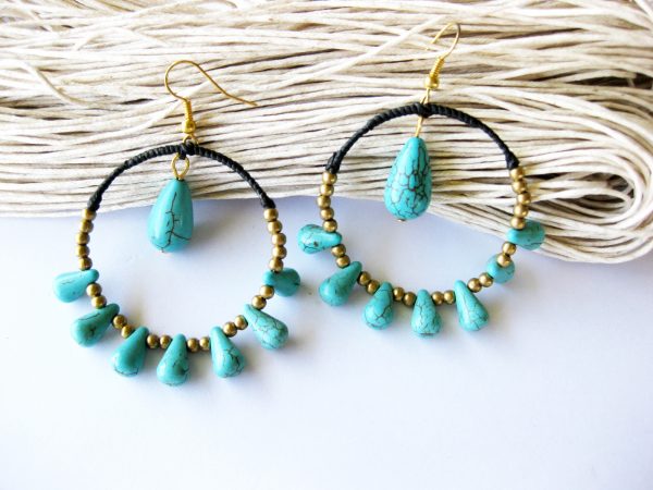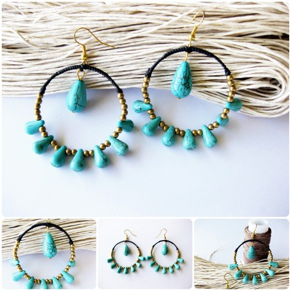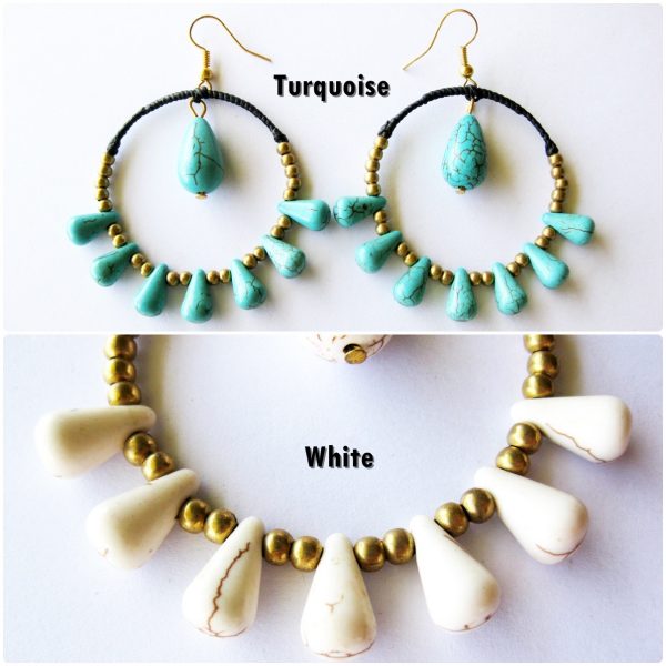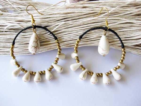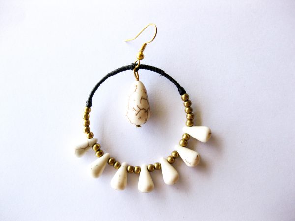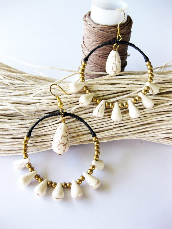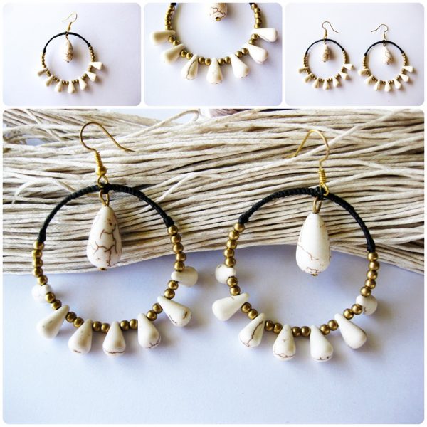 These are Chic and Charm to wear, using stone, crochet and wire method mixed with wax cord and brass bead together, could easily become your favorite pair of earrings.