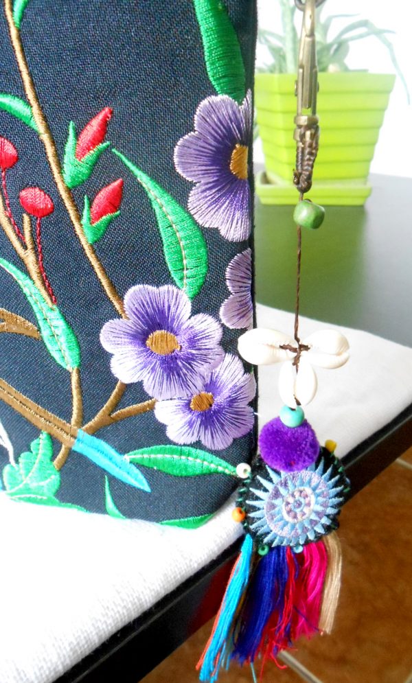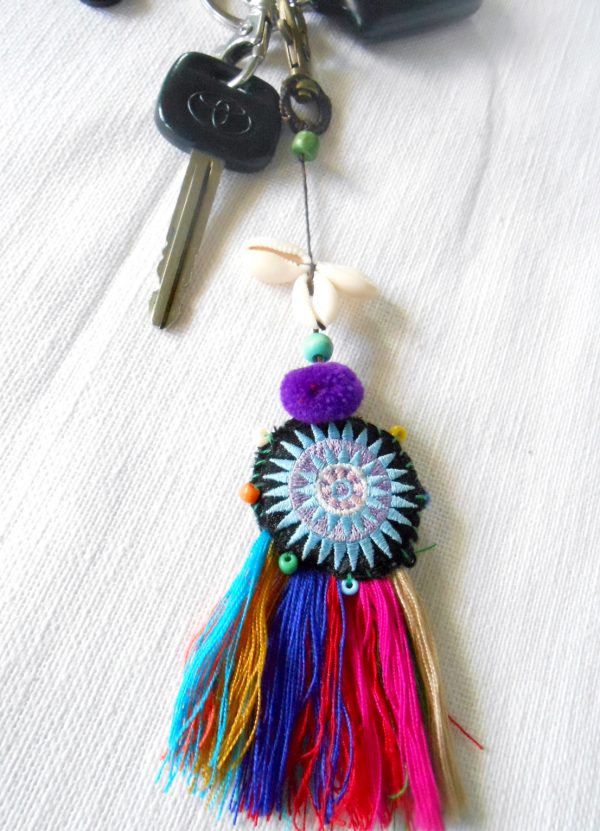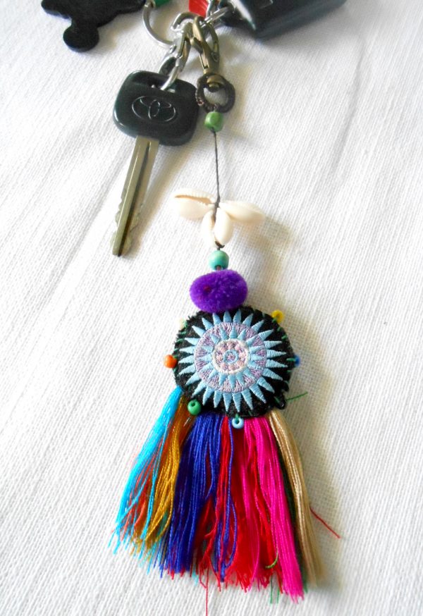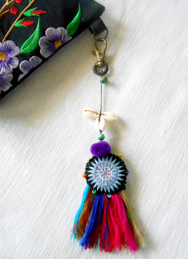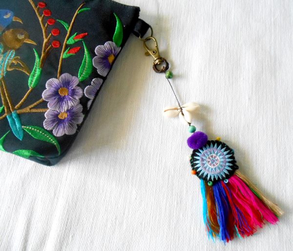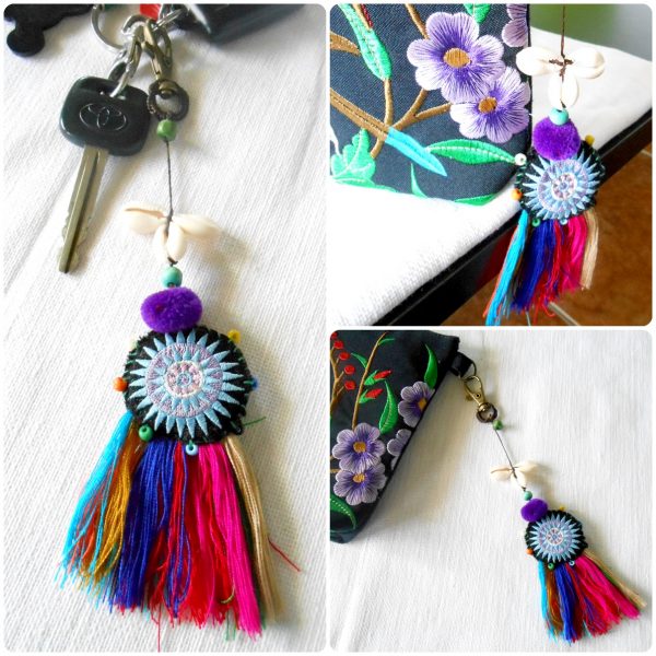 Enhance your handbag with this beautiful and colorful tassel accessory. Made by hand in Thailand.