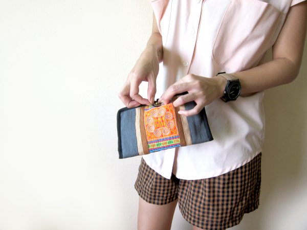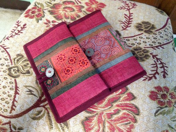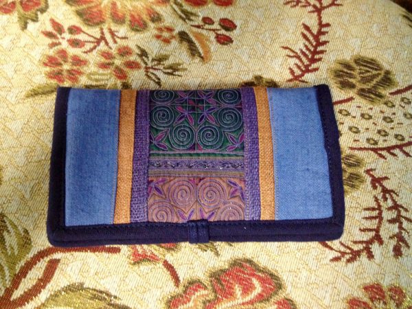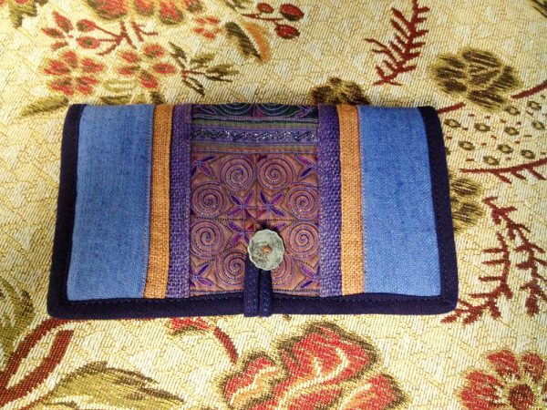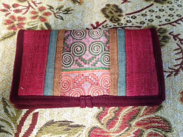 Tribal Vintage Style Wallet, Purse, Hemp Fabric, Hand Embroidered Textiles by Hmong Hill tribe. (KP1206)